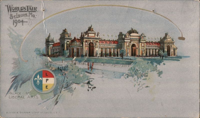 Front: WORLD'S FAIR STLOUIS MO 1994-9 PALACE of LIBERAL ARTS. BUXTON & SKINNER LITHO ST LOUIS. USA. SOF ייו וימוצן ו at alt M Back: DOST OST CARD PLACE STAMP HERE. ONE CENT STAMP & MEXICO. TWO CENT STAMP FOR ALL OTHER COUNTRIES. side only.