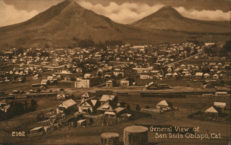 Front: 2162 DIT General View of San Luis Obispo, Cal. Back: >1¢ 2¢ San Luis Obispo, Town шла much Calif. better than view Chas PUBLISHED BY EDW. H. MITCHELL, SAN FRANCISCO