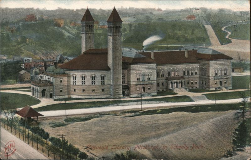 Front: We DEMARK Carnegie Library, Pittsburgh in Schenly. Park Back: COPYRIGHTED Me TRADEMARK No. 7482. The Metropolitan News Co., Boston, Mass, and Germany. TWO CENTS