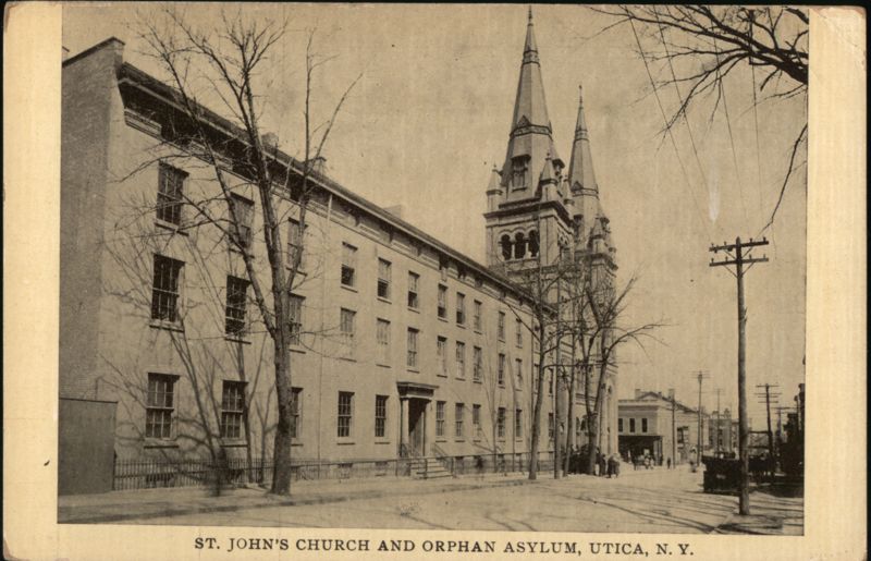 Front: ST. JOHN'S CHURCH AND ORPHAN ASYLUM, UTICA, N. Y. Back: Published by The Utica Paper Co., Utica, N. Y. K