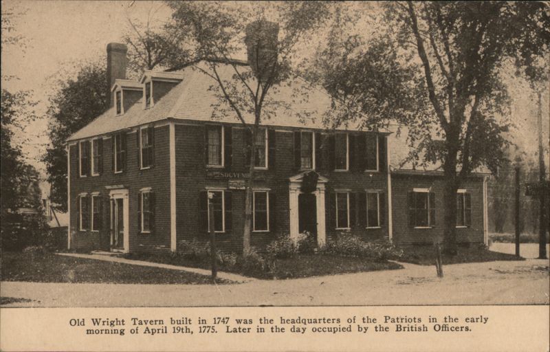 Old Wright Tavern built in 1747 was the headquarters of the Patriots in the early