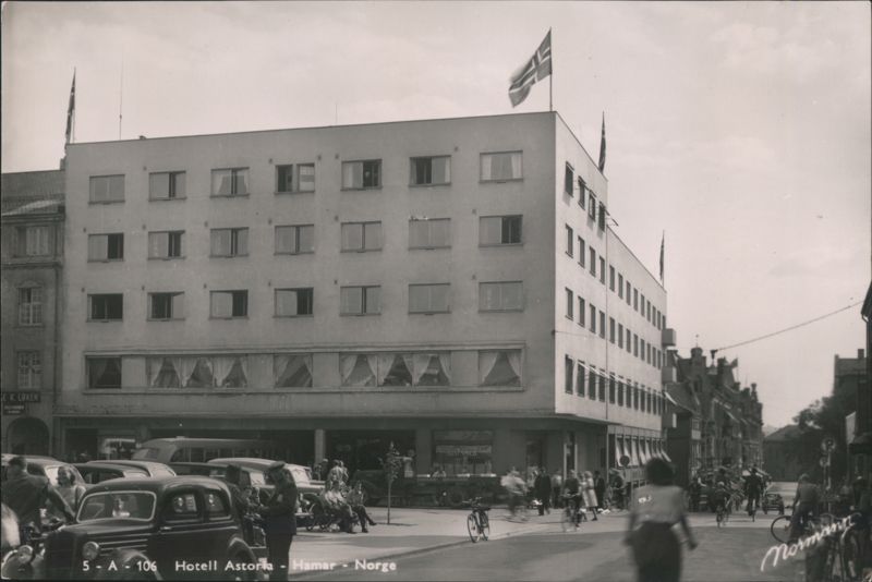 Front: IE K. LOKEN 5-A-106 Hotell Astoria Hamar - Norge ->>> GULLSMED HAMAR BRYGGERI Normann Back: 500 ENERETT: NORMANNS KUNSTFORLAG A/S OSLO