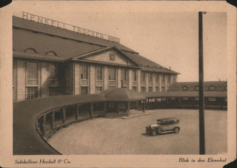 Front: HENKELL TROCKEN FEE DROW Sektkellerei Henkell & Co. Blick in den Ehrenhof Back: EN Wiesbaden-Biebrich, den Henkellsfeld Auch Sie werden bei Henkell erwartet!