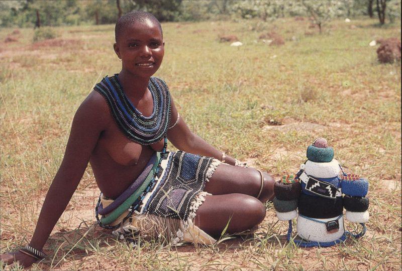 skoot. By haar is 'n vrugbaarheidspop van krale gemaak.