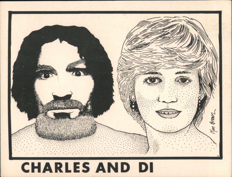 A humorous caricature of Charles Manson and Princess Diana.