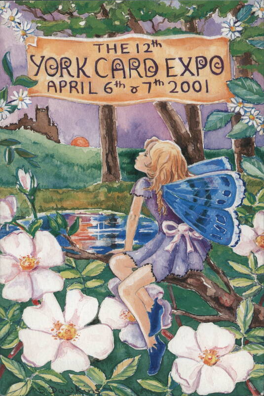 Front: THE 12th YORK CARD EXPO APRIL 6th & 7th 2001 Dawko Back: 100+ TERNATIONAL POSTCA YORK DEALERS YORK RACECOURSE APRIL 5 & 6 FRI 12-8 pm SAT 10-5 pm DETAILS 01347 822722 01268 743222 2002 EXPO