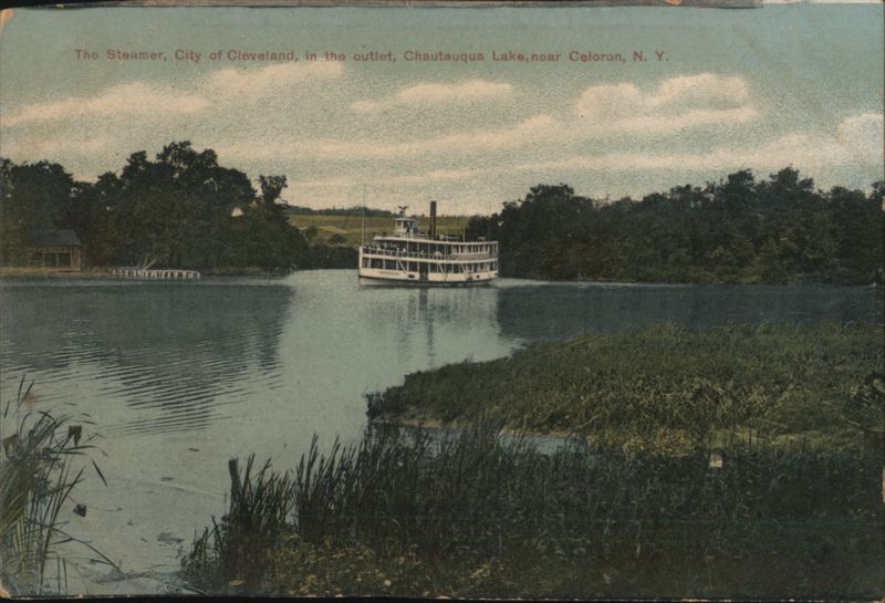 Front: The Steamer, City of Cleveland, in the outlet, Chautauqua Lake, near Celoron, N. Y. Back: L. Wayne Hofius, Celoron, Chautauqua Lake, N. Y. Series A 3. (Made in Germany.) ERIE, ECH.H. HAM(M) PA 100 157741