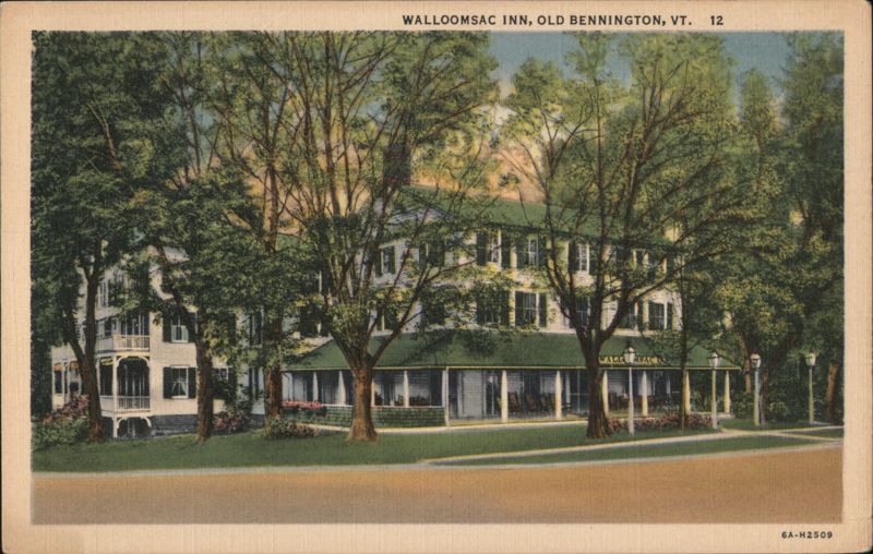 Front: WALLOOMSAC INN, OLD BENNINGTON, VT. 12 WALL ASAC 6A-H2509 Back: C. W. HUGHES & CO., INC., MECHANICVILLE. N. Y. "C.T. ART-COLORTONE REG. U.S. PAT. OFF. MADE ONLY BY CURT TEICH & CO., INC., CHICAGO HERE