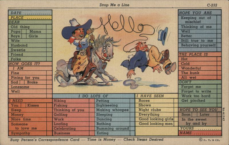 Busy Person's Correspondence Card Time is Money Check Items Desired