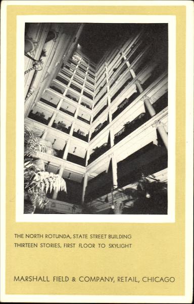 Front: THE NORTH ROTUNDA, STATE STREET BUILDING THIRTEEN STORIES, FIRST FLOOR TO SKYLIGHT MARSHALL FIELD & COMPANY, RETAIL, CHICAGO Back: THIS SPACE FOR ADDRESS ONLY