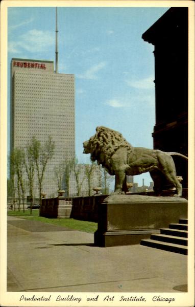 Chicago's Michigan Avenue skyline, from Grant Park, looking north, showing the famous Lion in front of the Art Institute and the Prudential Building in the background.
