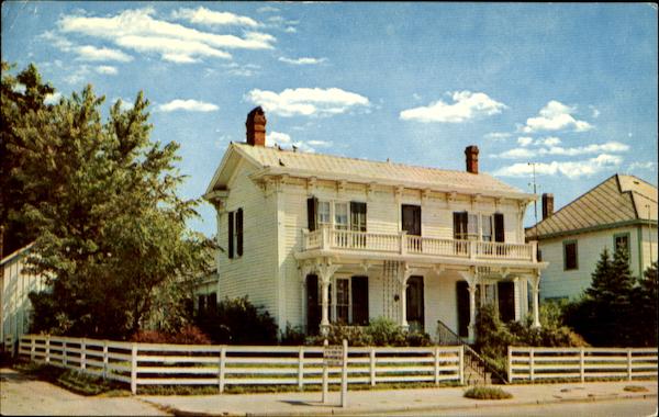 PUB. BY JOHNSON WHOLESALE CO., SEYMOUR, INDIANA JAMES WHITCOMB RILEY HOME Located at Greenfield, Indiana COLOR PHOTO BY MIDWEST Lusterchrome" REG. U.S. PAT. OFF. MADE ONLY BY TICHNOR BROS., INC., BOSTON 15, MASS. K-11113