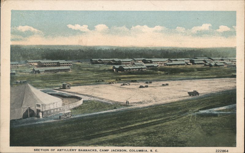 Front: EDPA CHATT SECTION OF ARTILLERY BARRACKS, CAMP JACKSON, COLUMBIA, S. C. 222864 Back: Sackett & Wilhelms Corp., New York and Brooklyn. Printed in U. S. A. THROUGHOUT SUPERIOR QUALITY FAMOUS THE WORLD Address Only