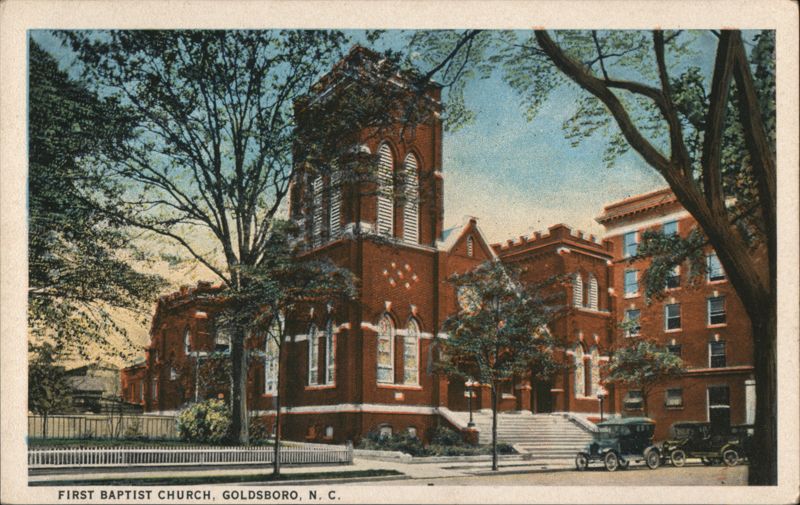 Front: FIRST BAPTIST CHURCH, GOLDSBORO, N. C. Back: R-91859 AND ISLAND POSSESSIONS, CUBA, CANADA AND MEXICO C. T. AMERICAN CHICAGO