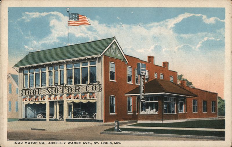 Front: IGOU MOTOR CON CASOLINE IGOU MOTOR CO., 4333-5-7 WARNE AVE., ST. LOUIS, MO. Back: 10 "GO TO IGOU" "We carry everything that's good" R-69996 C.T. AMERICANA THIS SPACE FOR ADDRESS ONLY.