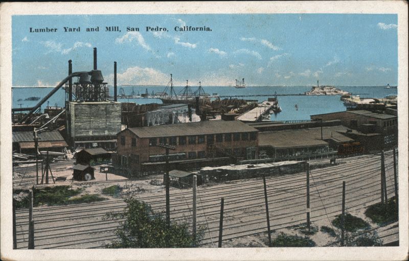 Front: Lumber Yard and Mill, San Pedro, California. MA Back: Pub. by California Postcard Co., Los Angeles, Cal. POSTCARDCO. LOS ANGELES 25035N $3