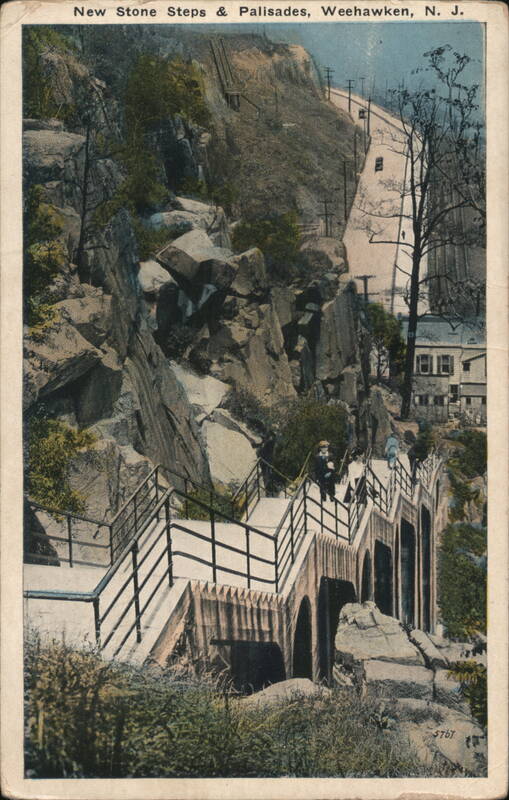 Front: New Stone Steps & Palisades, Weehawken, N. J. STBY Back: how are you all 1 having trime ance how is the cards Mrs. Brdi Gr B 13. M