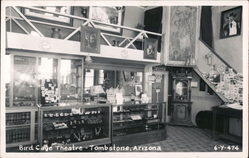 Front: COLLE THEATRE ENTRANCE HISTORICAL NOTICS EXHIBIT AND MUSEUM hind This Door Bird Cage Theatre - Tombstone, Arizona HUMAN F 6-Y-474 Back: -EK 1,00 Sp13