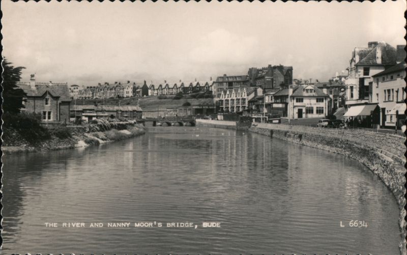 Front: AAAAA GREFVILLE HOTEL GARI THE RIVER AND NANNY MOOR'S BRIDGE, BUDE GRENVILLE LLOYDS BANK LIMITED L 6634 Back: Valentine's SENDING YOU GREETINGS THIS IS A REAL PHOTOGRAPH 5059 STYLE 4. GT. BRITAIN