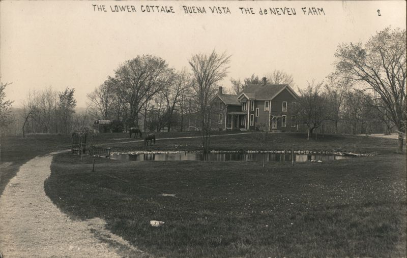 Front: THE LOWER COTTAGE BUENA VISTA THE de NEVEU FARM 8 Back: AAZO A z STAMP = © HERE A AZO NAME AND ADDRESS HERE