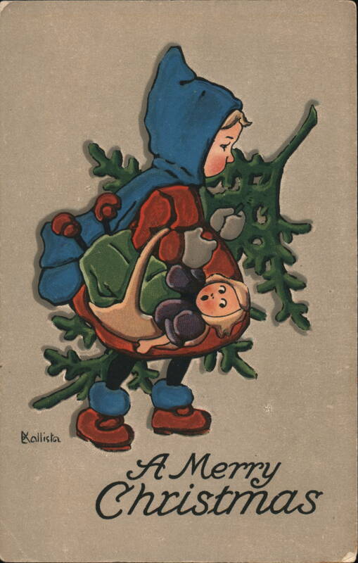 Child Carrying Toys and Tree Branch, A Merry Christmas