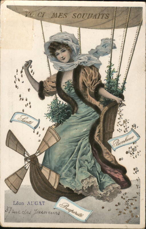 Front: VCCI MES SOUVAITS Sante Léon AUGAT Prospérité 37 rue des Jeuneurs Bonheur Back: Monsieur et he adame Wyst 21 Avaine de Paris 23 nevilliers. feme で