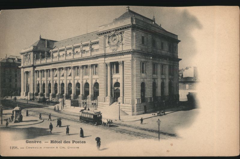 Front: AXXO Genève. Hôtel des Postes 1298. CHARNAUX FRERES & CIE, GENEVE GBRETAGNE ALLEMAGNE RUSSIE HOLLAGE Back: Côté réservé à l'adresse. Postkarte. Carte postale. Cartolina postale. Nur für die Adresse. Lato riservato all indirizzo.