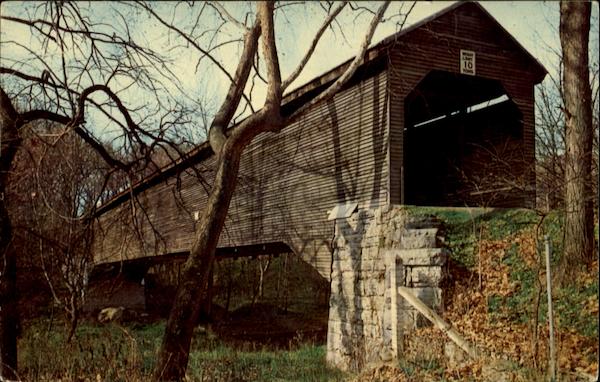 | This picturesque old covered bridge located 2 miles South of Mt. Jackson, Virginia and north of New Market, is located on a state road crossing the north fork of the Shenandoah River, between Hwy. No. 11 and interstate No. 81. this road can be taken to Shenandoah Caverns. The bridge was built in 1893 and has a span of 191. |