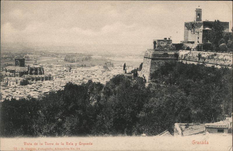 Front: Vista de la Torre de la Vela y Granada 31 R. Garzon, Fotografo, Alhambra No. 24 TIMI 80925 Granada Back: (UNION POSTAL UNIVERSAL) ESPAÑA