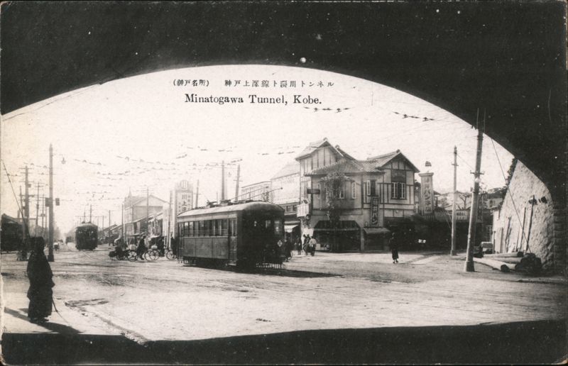 ( 神戸名所) 神戸上澤線ト湊川トンネル Minatogawa Tunnel, Kobe. 川上洋 Ha 藤井パン