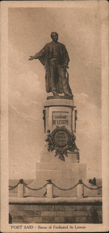 Front: FERDINAND DE LESSEPS 1805-1994 APERIRE TERRAM CENTIBVS Xxxxxx PORT SAID - Statue of Ferdinand de Lesseps Back: 350 STYLIANOS COUTSICOS CAIRO PORT SAID Statue de Ferdinand de Lesseps. POST CARD - EGYPT