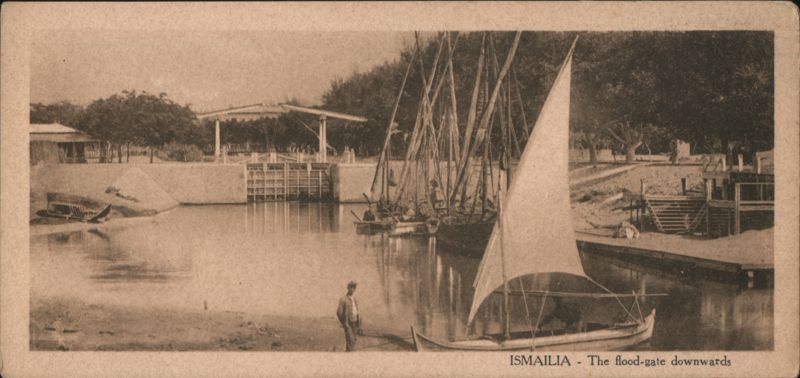 Front: ISMAILIA -The flood-gate downwards Back: 375 STYLIANOS COUTSICOS CAIRO ISMAILIA.. L'ecluse vu en oval. EGYPT⚫