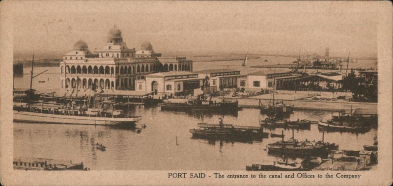 Front: PILOTE PORT SAID - The entrance to the canal and Offices to the Company Back: 364 STYLIANOS COUTSICOS CAIRO. PORT SAID. Entrée du canal et Bureaux de la Compagnie. POST CARD - EGYPT
