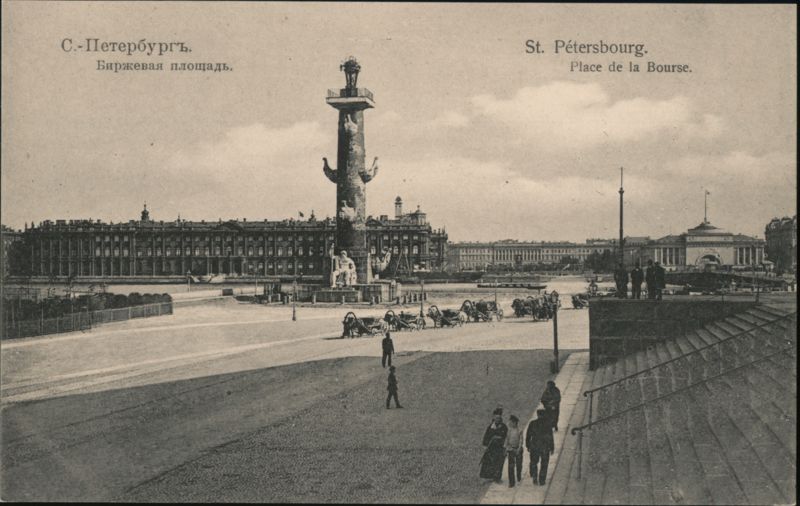 Front: С.-Петербургъ. Биржевая площадь. St. Pétersbourg. Place de la Bourse. Back: Изданіе К. М. Лембергъ, С.-Петербургъ. GW ВСЕМІРНЫЙ почтовый союзъ. РОССІЯ. UNION POSTALE UNIVERSELLE. RUSSIE. ОТКРЫТОЕ ПИСЬМО. - CARTE POSTALE, کی дето 897 Imp.