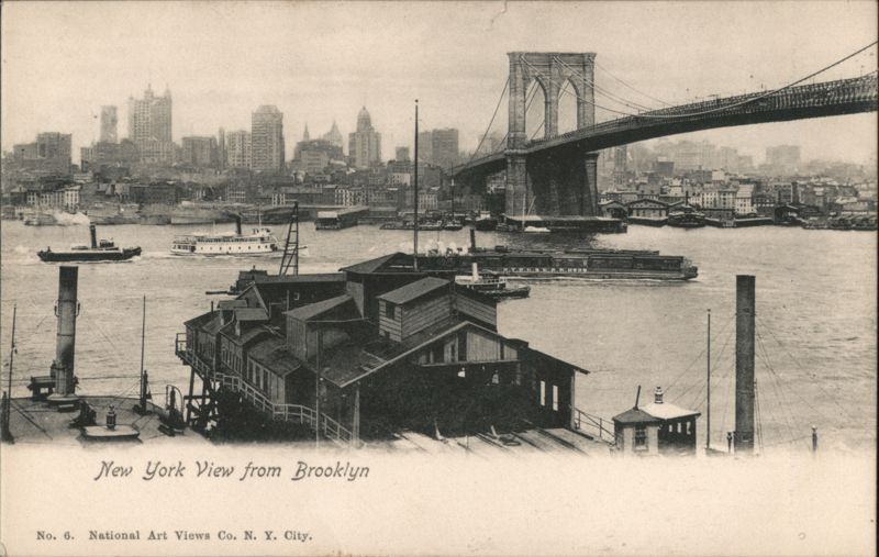 Front: 77776 New York View from Brooklyn No. 6. National Art Views Co. N. Y. City. Back: SIDE FOR THE ADDRESS, منى GERMANY