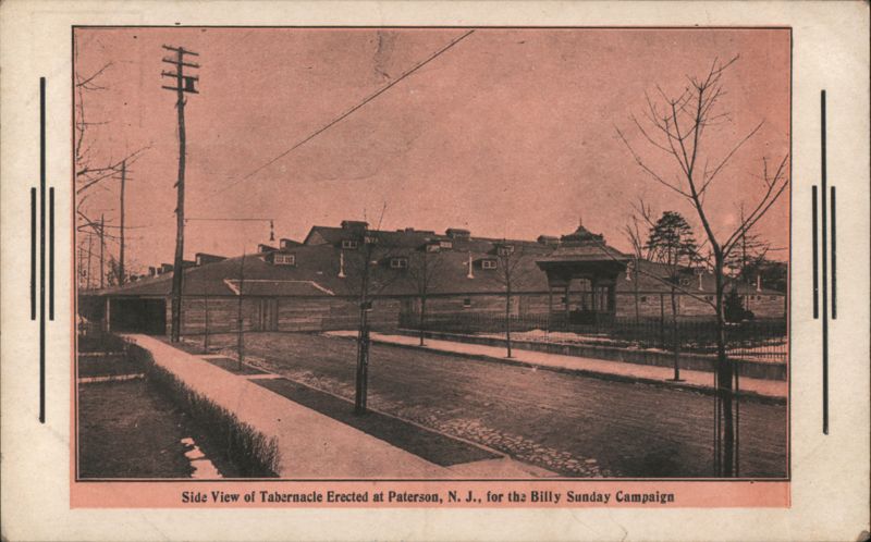 Front: Side View of Tabernacle Erected at Paterson, N. J., for the Billy Sunday Campaign Back: Published by Wm. T. Suttle, Jr., Paterson, N. J.