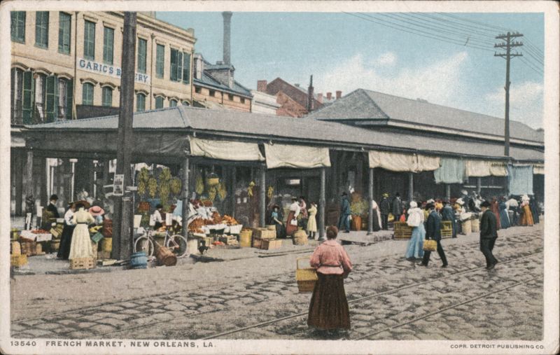 Front: GARICS BRY 13540 FRENCH MARKET, NEW ORLEANS, LA. COPR. DETROIT PUBLISHING CO. Back: "PHOSTINT" TRADE MARK REG. U S. PAT OFF MADE ONLY BY DETROIT PUBLISHING CO. FOREIGN, TWO THIS SPACE MAY BE USED FOR MESSAGE. CENTS