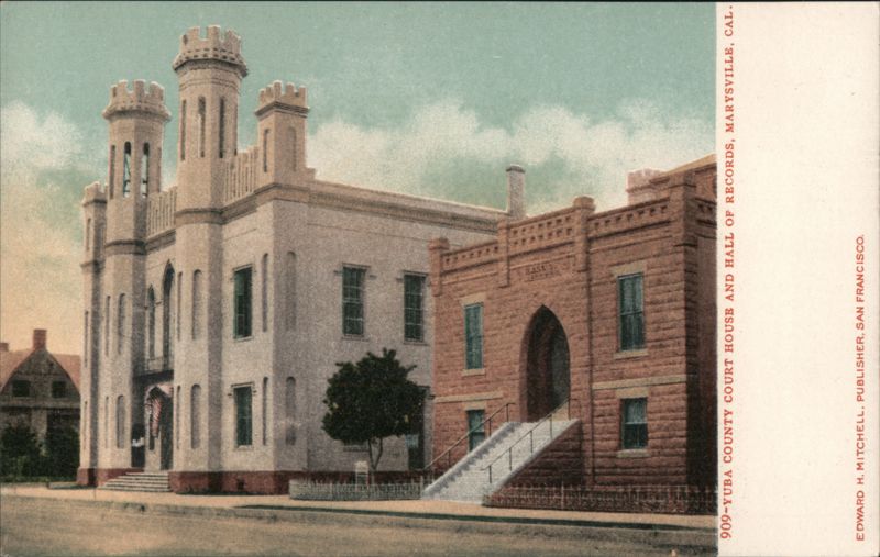 Front: HALLE ON 909-YUBA COUNTY COURT HOUSE AND HALL OF RECORDS, MARYSVILLE, CAL. EDWARD H. MITCHELL, PUBLISHER, SAN FRANCISCO. Back: THIS SIDE IS FOR THE ADDRESS
