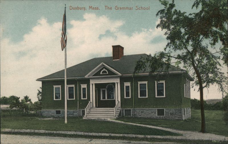 Front: Duxbury, Mass. The Grammar School ☐ ☐ 98122 Back: Pub. by W. F. Currier, Plymouth, Mass. No. 34212b Made in Germany QUALITY MESSAGE MAY BE WRITTEN ON THIS SIDE. and Island Possessions Cuba, Canada and For Foreign.