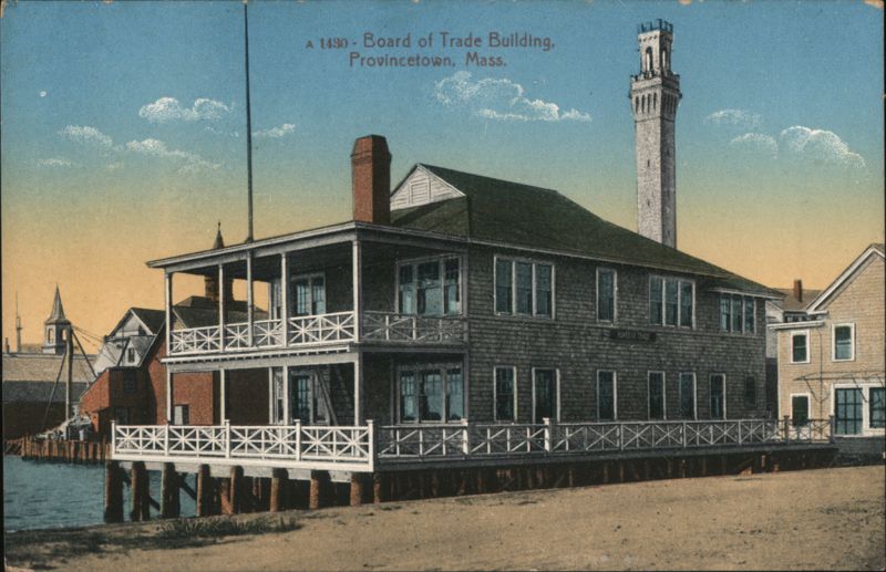 Front: ЖІЖ A 1430 - Board of Trade Building, Provincetown, Mass. Back: Pubi. by Provincetown Advocate, Provincetown, Mass. Made in Germany - B. Y. & Co. HERE