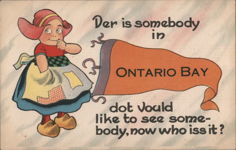 Front: Der is somebody in ONTARIO BAY dot Vould like to see some- body, now who iss it? Back: =Post CardSTAMP FOR ADDRESS ONLY