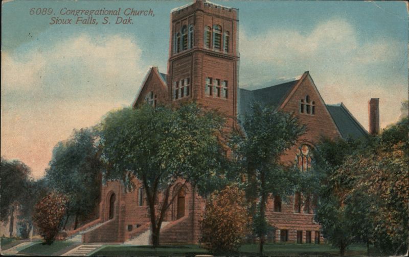 Front: 6089. Congregational Church, Sioux Falls, S. Dak. 田 Back: Past Card GE S. missdda Fanson Colloro ро Sellek AUG 23 3-PM 191 me fr letter and dunes. Pub. expressly