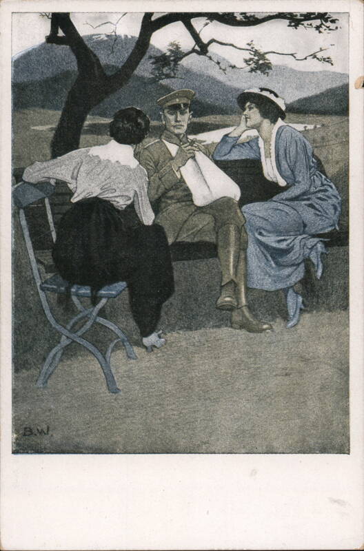 Kriegspostkarten von B. Wennerberg Nr. 3. Daheim Verlag von Albert Langen, München Druck von Hesse & Becker, Leipzig An in