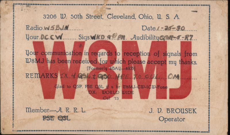 Glad to QSP, PSE QSL if u hr W8MJ-CW-ICW-Fone
