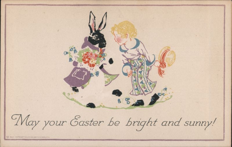 Front: May your Easter be bright and sunny! 5611 COPYRIGHT 1918, PF. VOLLAND CO.CHIGAGO,U.S.A. Back: PUBLISHED BY P. F. VOLLAND CO., CHICAGO, U.S.A. 1195 THE MARK OF ORIGINALITY TWO CENTS