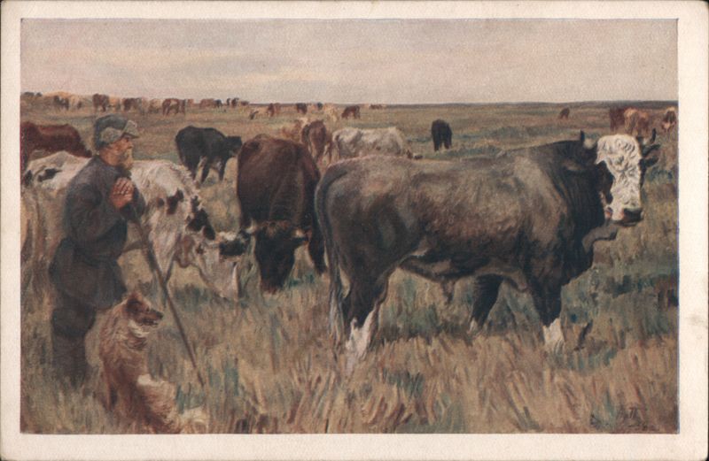 State Art Publishers. A. A. Plastov. Collective Farm Cattle. А. А. Пластов. Колхозное стадо. Printed in the Soviet Union.
