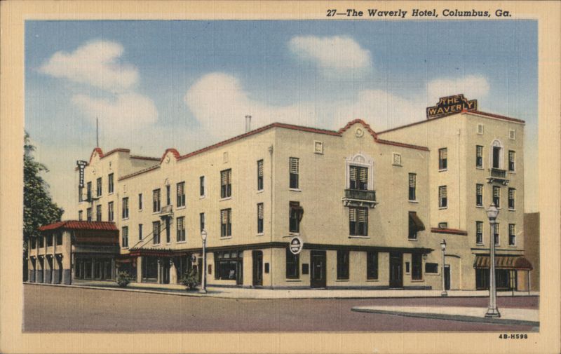 Front: 27-The Waverly Hotel, Columbus, Ga. WAVERLY FREEEH 4B-H598 Back: THE WHITE COMPANY, COLUMBUS, GA. GENUINE CURTEICH-CHICAGO "C.T. ART-COLORTONE" POST CARD (REG. U.S. PAT. OFF.) PLACE