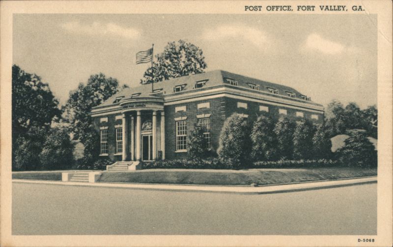Front: POST OFFICE, FORT VALLEY, GA. D-5068 Back: GENUINE CURTEICH-CHICAGO C.T. PHOTO-PLATIN' POST CARD (REG.U.S.PAT.OFF.)