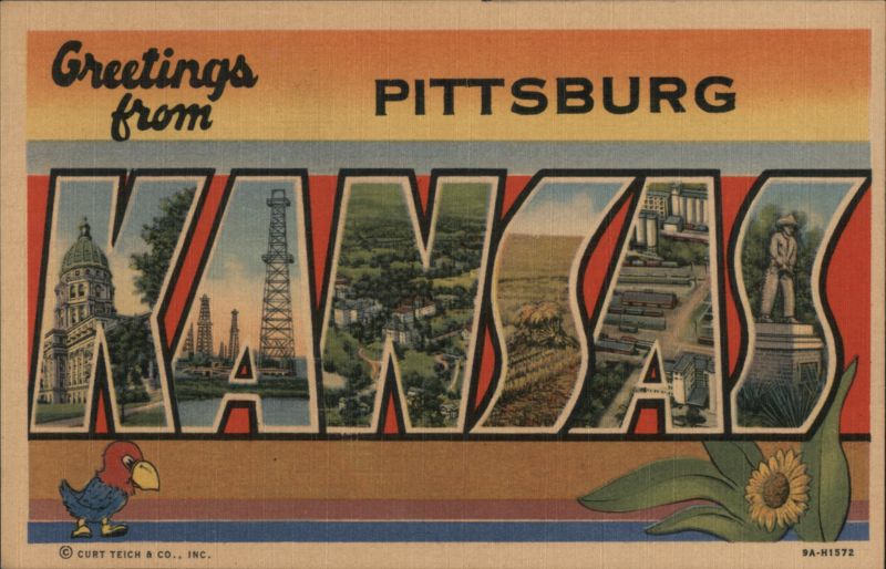 Front: Greetings PITTSBURG ANSA CURT TEICH & CO., INC. 9A-H1572 Back: GENUINE CURTEICH-CHICAGO "C.T. ART-COLORTONE" POST CARD (REG. U.S. PAT. OFF.) HERE