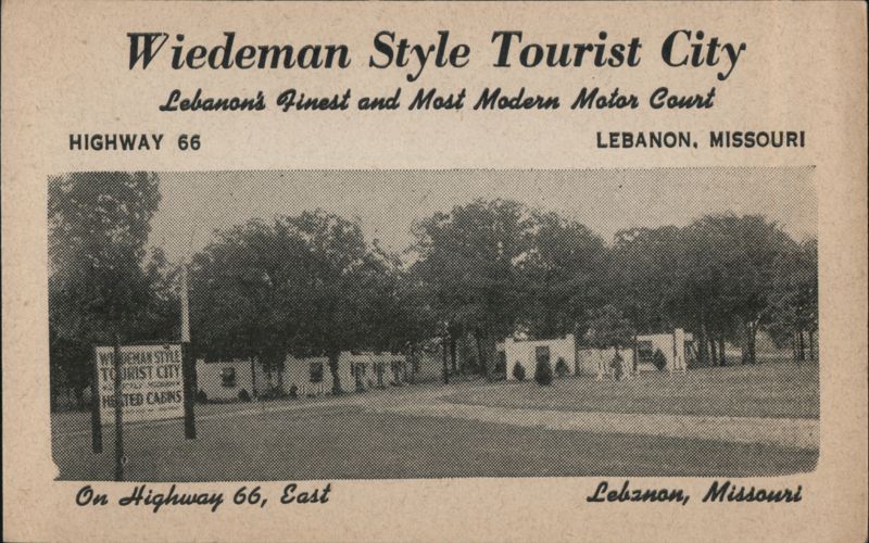Wiedeman Style Tourist City Lebanon's Finest and Most Modern Motor Court HIGHWAY 66 LEBANON, MISSOURI HEATED CARS On Highway 66, East Lebanon, Missouri